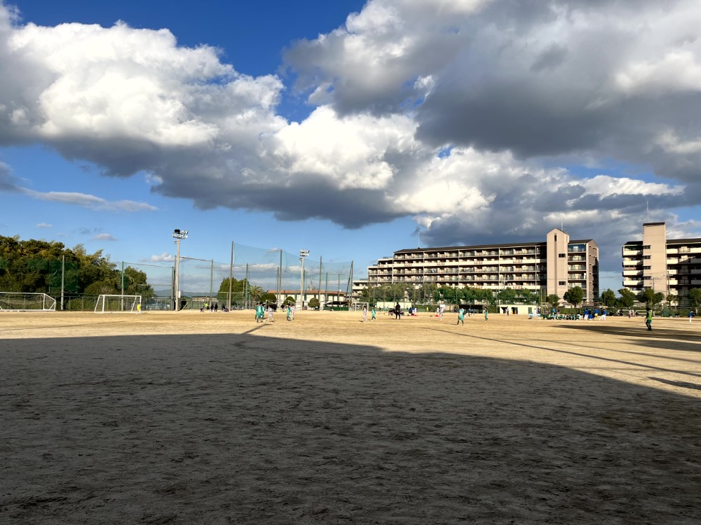 駐車場無料で大阪狭山市の市営施設となる土の多目的総合グラウンドです。広さは小学生のコート2面とれる大きさです。隣にはテニスコートや野球場、体育館などがあります。